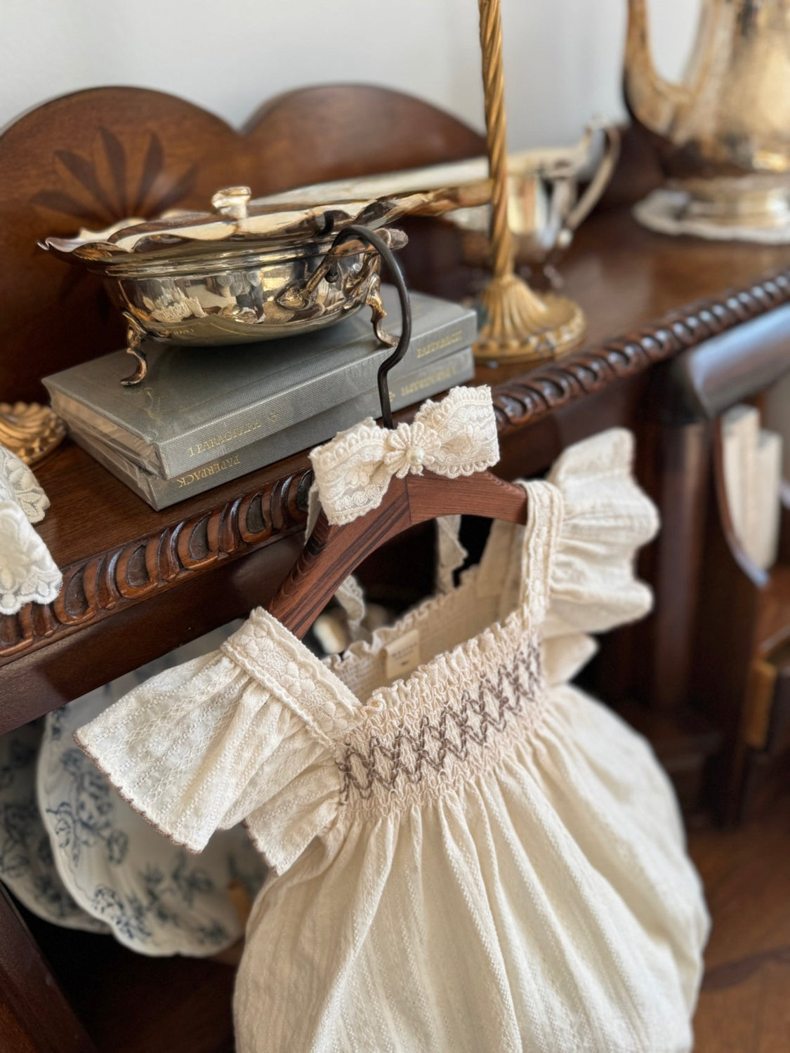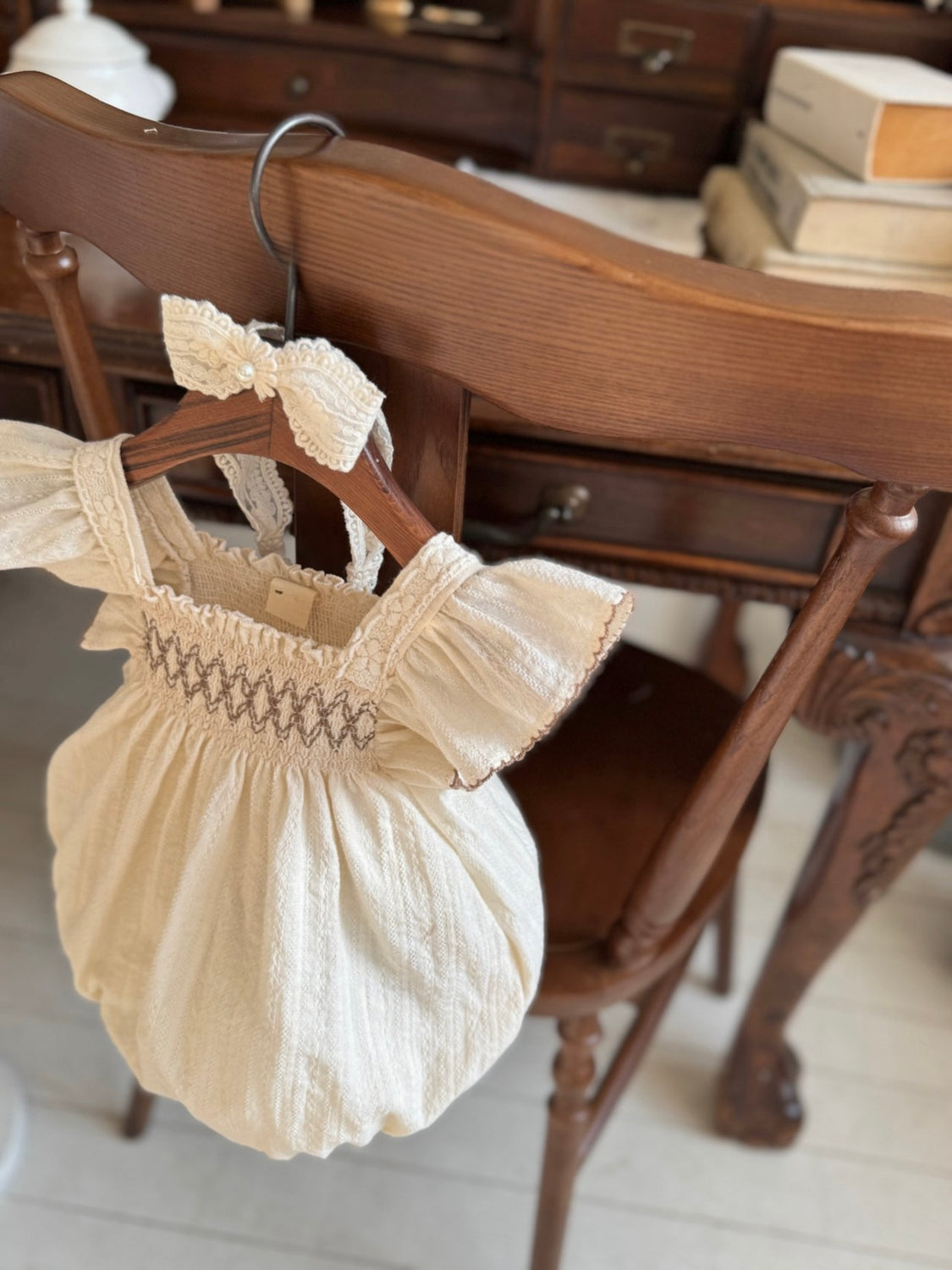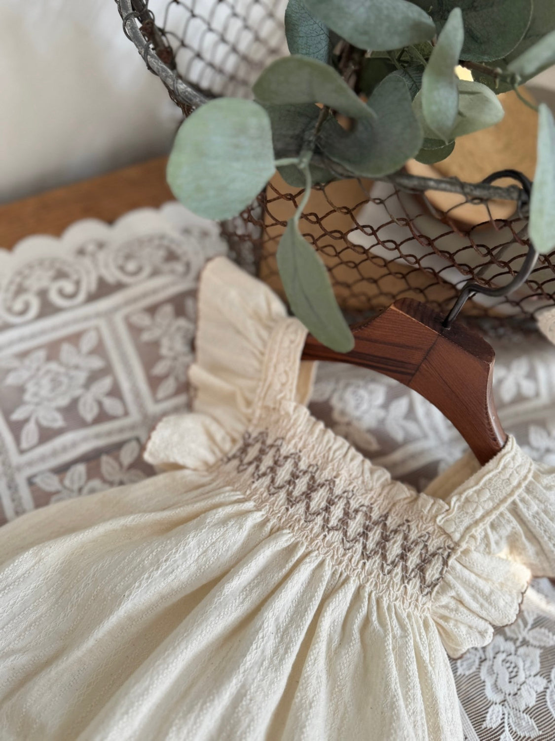 A soft, summery romper with smocking detail and flutter sleeves — perfect for everyday wear, photos and warm-weather outings.